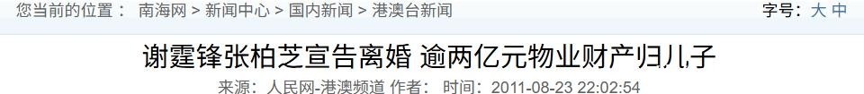 94. 部分参考资料:微博|张柏芝为7岁小儿子庆生合照人民网|谢霆锋张柏芝宣告离婚 逾两亿元物业财产归儿子新京报|锋芝离婚始末:3个月离婚“大戏”完结4年婚姻
