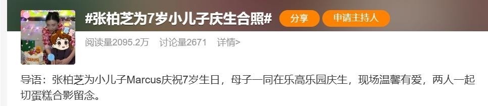 1. 近日,张柏芝为七岁的小儿子举办生日庆祝活动,照片中她眼神温柔,流露出一位母亲独有的细腻情感。